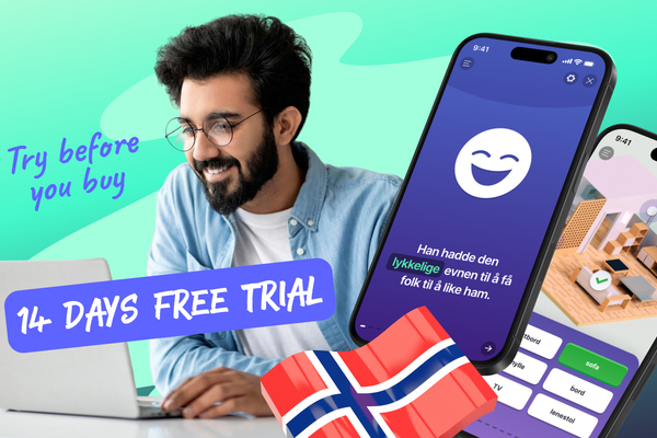 Start your free Norwegian course and get two weeks of live FlexiNorwegian lessons with our teachers and three chapters from our interactive learning resource Samaneh’s Journey.